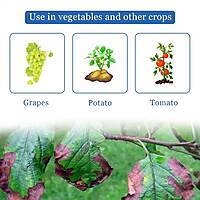 ಬೆಳೆ ನಿಯಂತ್ರಣಯೋಗ್ಯ ರೋಗ ಡೋಸೇಜ್ ಆಲೂಗಡ್ಡೆ ಲೇಟ್ ಬ್ಲೈಟ್ 1–1.5 ಗ್ರಾಂ/ಲೀಟರ್ ನೀರು ದ್ರಾಕ್ಷಿ ಡೌನಿ ಮಿಲ್ಡ್ಯೂ 1–1.5 ಗ್ರಾಂ/ಲೀಟರ್ ನೀರು